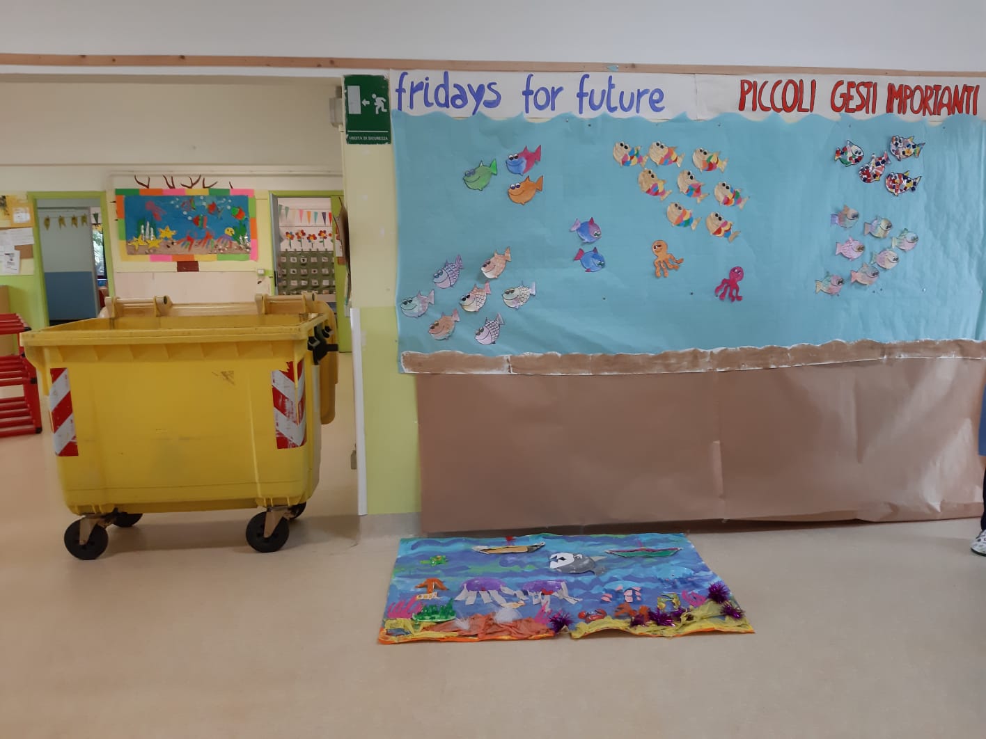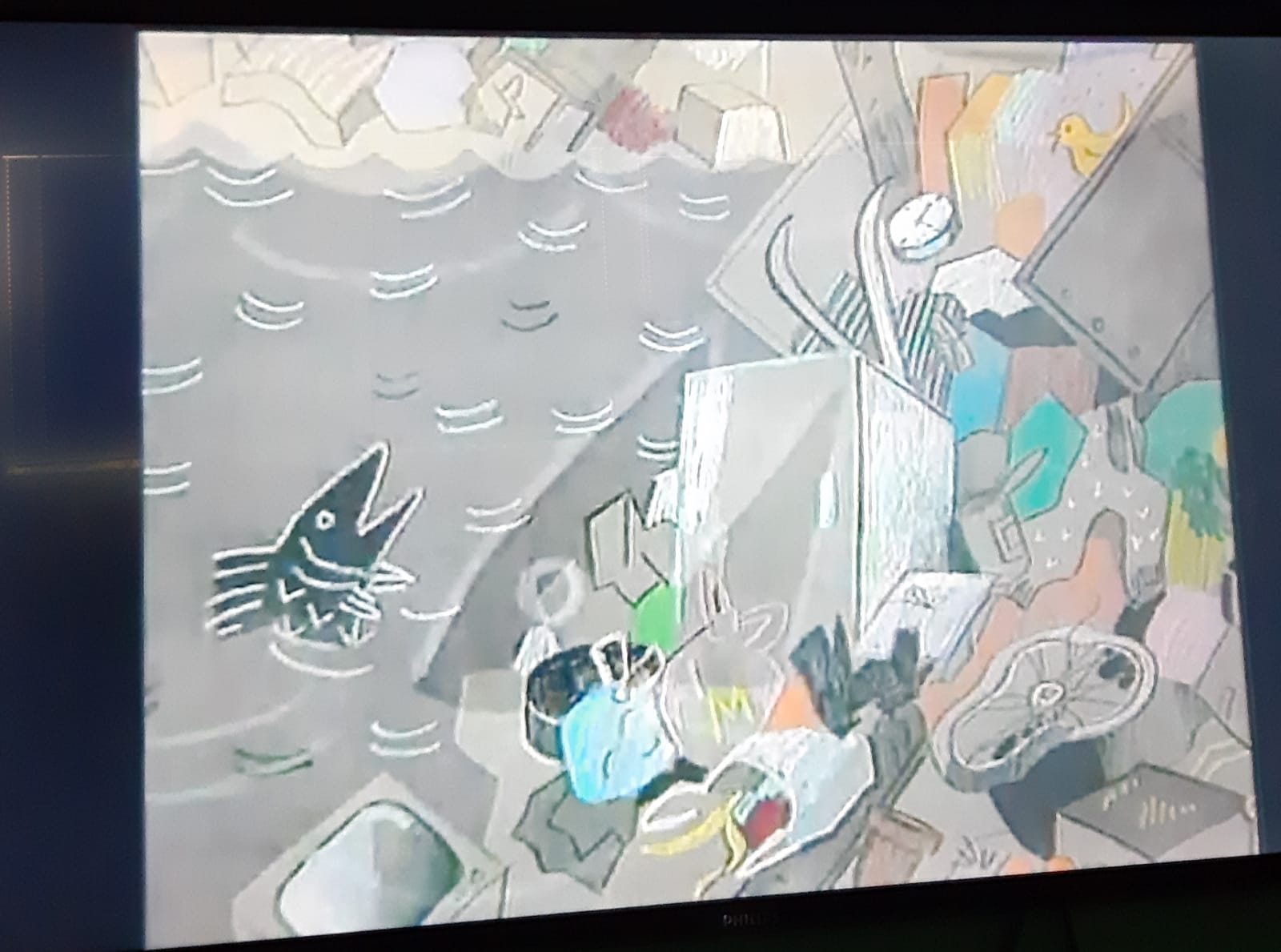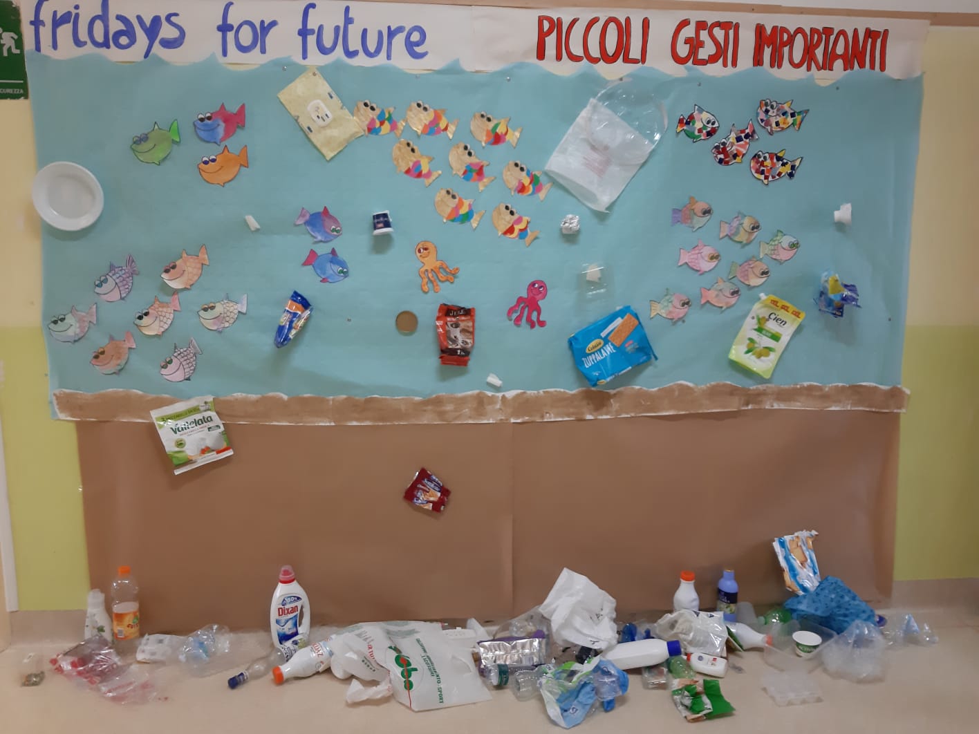 La scuola è stata invasa dalla plastica: salone, giardino, cartellone del mare appena finito….che fare? Ai bambini è stato proposto un video di RAI Educational in cui ad una famiglia di pesciolini succedeva la stessa sorte, da lì ha preso avvio un brainstorming alla ricerca di una soluzione per la nostra scuola, poi la “caccia alla plastica” ed infine la scelta lasciata ad ogni bambino di buttare la medesima nel bidone giallo, in un cestino qualsiasi oppure depositarla sul cartellone del mare.